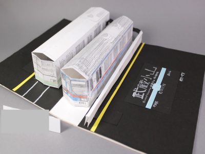 「空間のデザイン」です。図工ランド展で展示するため、多くの作品を展示台にのせる都合で縦に長い部屋になったのですが、かえって面白い空間ができました。建物の機能は自由です。のびのび発想して楽しく作ってもらいました。スケール感・・・
