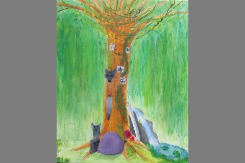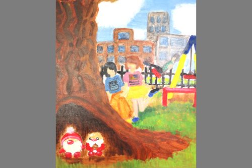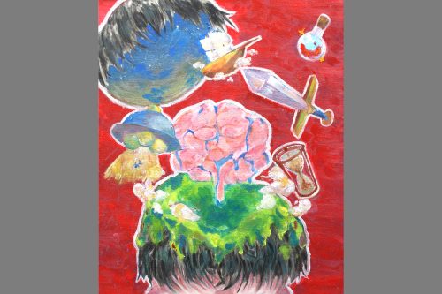 展覧会の作品だけあって、普段より一層気合が入り、力を発揮出来ている作品が数多くありました。画面構成もしっかり考えて、意識的に遠近法を使っている絵もありました。絵の具の付け方や色の組み合わせも工夫していて、とても面白いです。素晴らしい展覧会になったと思います。