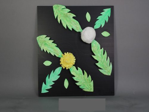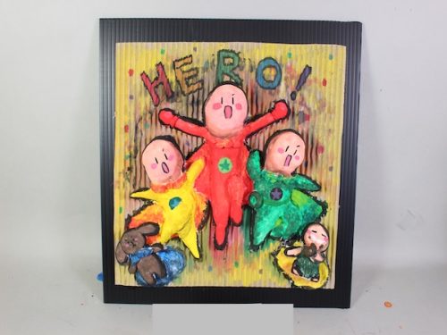 半立体的な作品を作りました。全体的に飛び出ているものや、一部分が大きく飛び出ている物など、半立体の効果を上手く使った作品が出来上がりました。