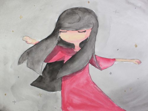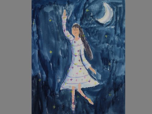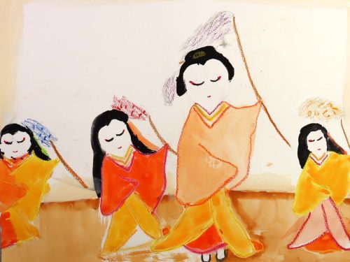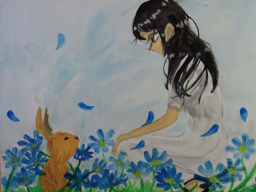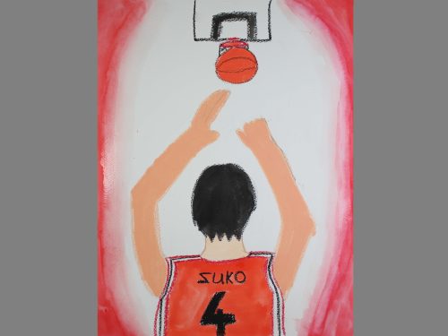 人を描くことは簡単ではありませんが、挑戦してもらいました。この課題のねらいは、正確な人体を描くことではなく、人間を描くことです。「人を描くのは苦手」と思わずに、人間を描くことでこそ作り出せる豊かな絵の世界を、それぞれに生み出してほしいと考えました。